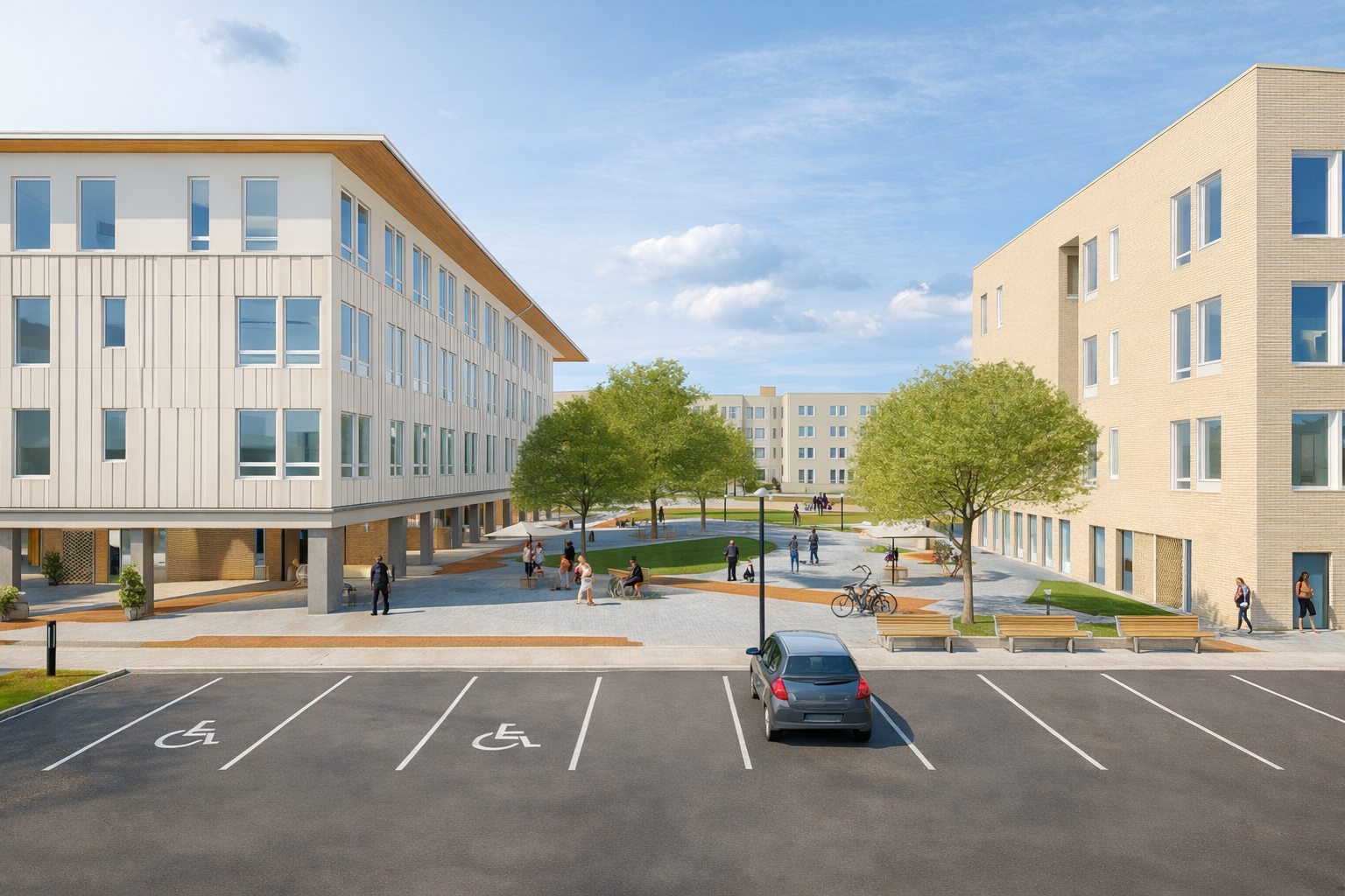 On-site parking and EV charging stations